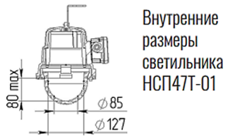 *Лампа накаливания, энергосберегающие лампы, светодиодные лампы и лампы типа ДРВ с цоколем Е27 Учитывая большое разнообразие выпускаемых энергосберегающих (КЛЛ) и светодиодных ламп при принятии решения об их использовании в светильниках типа НСП47Т- 75 УХЛ1 необходимо обращать внимание на внутренние размеры светильников. Не допускается касание лампы внутренних поверхностей светильника.