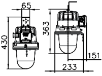Взрывонепроницаемая оболочка светильника состоит из двух частей – колпака и корпуса. Корпусные детали отлиты из коррозионностойкого алюминиевого сплава. Колпак представляет собой светопропускающий элемент, отлитый из боросиликатного стекла и герметично закрепленный в металлическом кольце. С корпусом колпак соединяется посредством резьбового лабиринта, обеспечивающего взрывонепроницаемое соединение. Для защиты внутреннего объема от влаги и пыли соединение уплотняется резиновым кольцом. На корпусе светильника герметично укреплена вводная коробка, конструкция которой допускает как тупиковый, так и транзитный монтаж светильников.